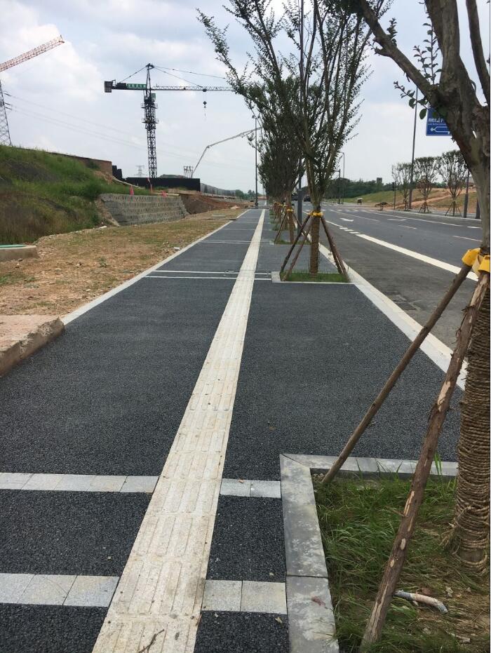 露骨料透水混凝土防止路面积水和夜间路面反光,冬天不会在路面形成黑冰(由霜雾形成的一层几乎看不见的薄冰,极危险),提高车辆、行人的通行舒适性与安全性;